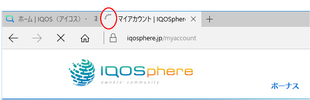 下の画像でブラウザの赤丸で囲ってる部分がクルクル回ってる間は