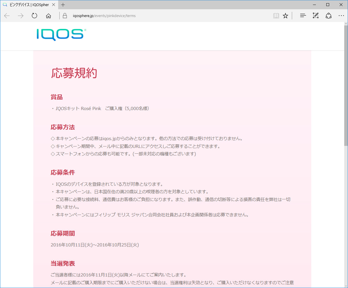 アイコスピンクの抽選販売のお知らせは
