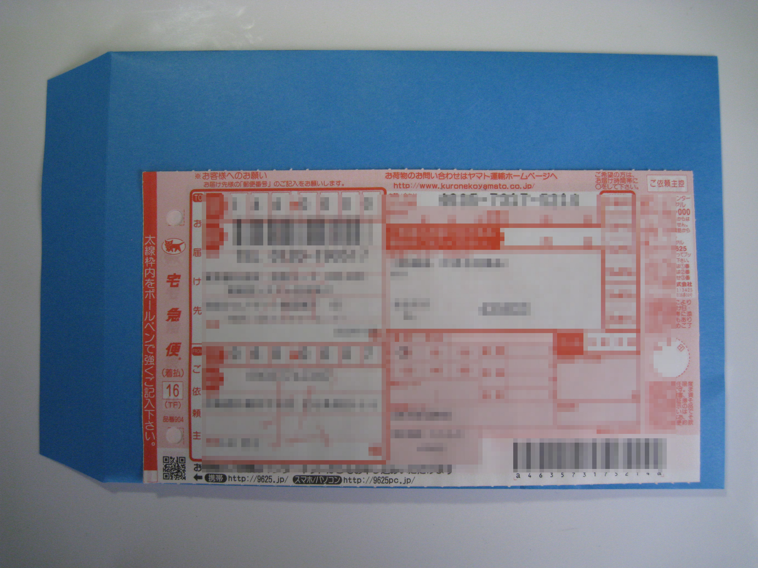 返信封筒にはクロネコ便の送り状が貼ってあり(着払い)
